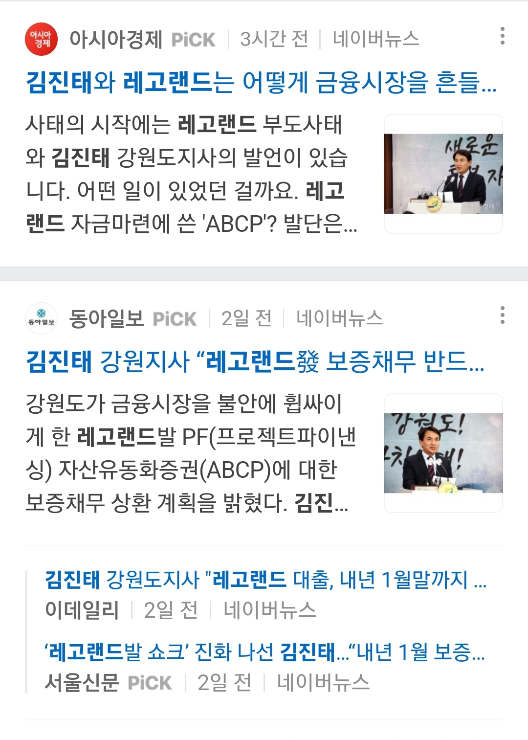 전임 정권, 전임 지사 사업을 비난하고 책임을 증가시켜 망가뜨리면 된다는 한심한 발상이 만든 어마어마한 시장혼란인데 문제를 인식한 정부에서 강원도를 설득해 결국 보증을 하겠다는 발표를 했지만 시장은 돌아서지 않고 있고 건설사들은 위기설 속에 애타게 돈줄을 찾고 있는 상황이다.