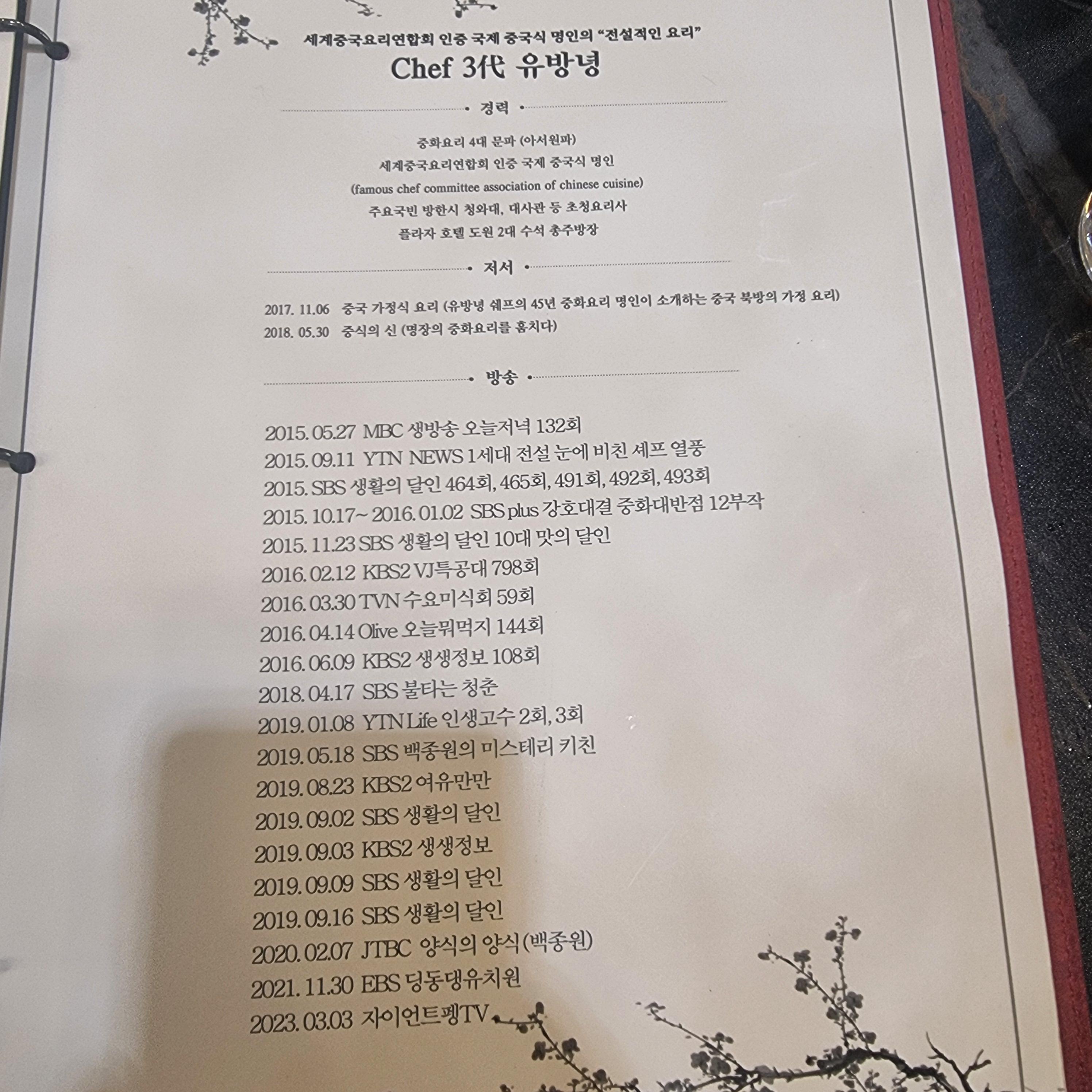 플라자호텔 중식당 도원의 총주방장이던 유방녕셰프의 레스토랑이군요.