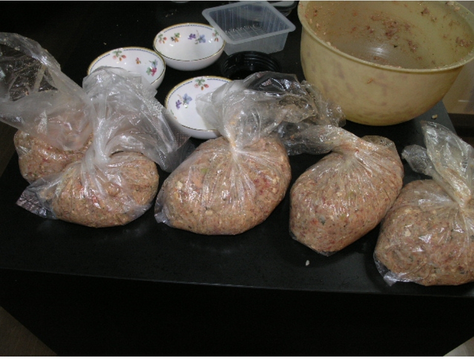 1) 강아지에게 필요한 육류의 종류와 비중 어린 강아지에게는 50%정도,성견은 40%,노견은 30%이상이 적합합니다 고기는 호주제 소고기를 주로합니다(건강이라는 측면 만보면 호주제는 참 좋은 고기입니다. 가격도 가장 싼 부위로 그때그때 구매하죠 100g에 1000원 을 넘지 않게 구매할 수 있습니다)